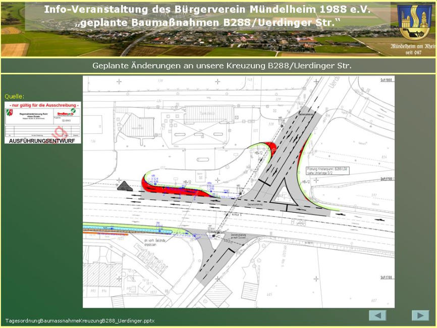 Info-Veranstaltung des Bürgervereins Mündelheim geänderte Fahrspur auf der B288 in Richtung Krefeld bzw. Ehingen