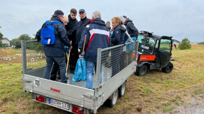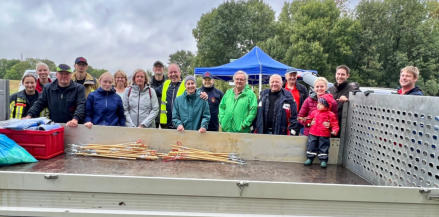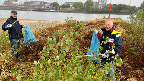 Impressionen dieser völlig verregneten Aktion Zum 3. Male nahmen die Bürgervereine Ehingen, Mündelheim und Serm gemeinsam am Rhine Clean Up teil, unterstützt durch die „Offensive für ein Sauberes Duisburg“. Nachdem wir wochenlang bestes Wetter geniessen durften, regnete es am Samstag in Strömen, deshalb war die Teilnahme leider geringer als zuletzt, aber beide Container wurden in der kurzen Zeit bis zum Abbruch noch fast voll.DANKE an alle die trotzdem geholfen haben: