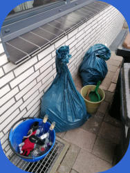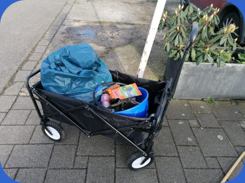 unterwegs, sammelten an der Uerdinger Strasse, leider sehr erfolgreich.