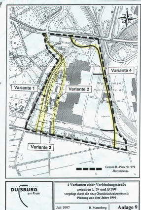 Seit mehr als 50 Jahren existieren Überlegungen, eine Direktverbindung von der Mannesmannstr. in Hüttenheim durch das