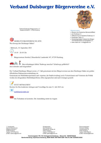 Der Verband Duisburger Bürgervereine e.V. lädt gemeinsam mit den