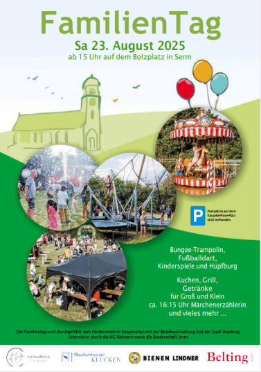 Am Samstag, 23. August 2025, findet ab 15 .00 Uhr der Sermer Familientag statt.
