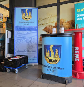 bei REWE Schwinning in Hüttenheim im Rahmen der Aktion insgesamt 23 Körbe mit Lebens-