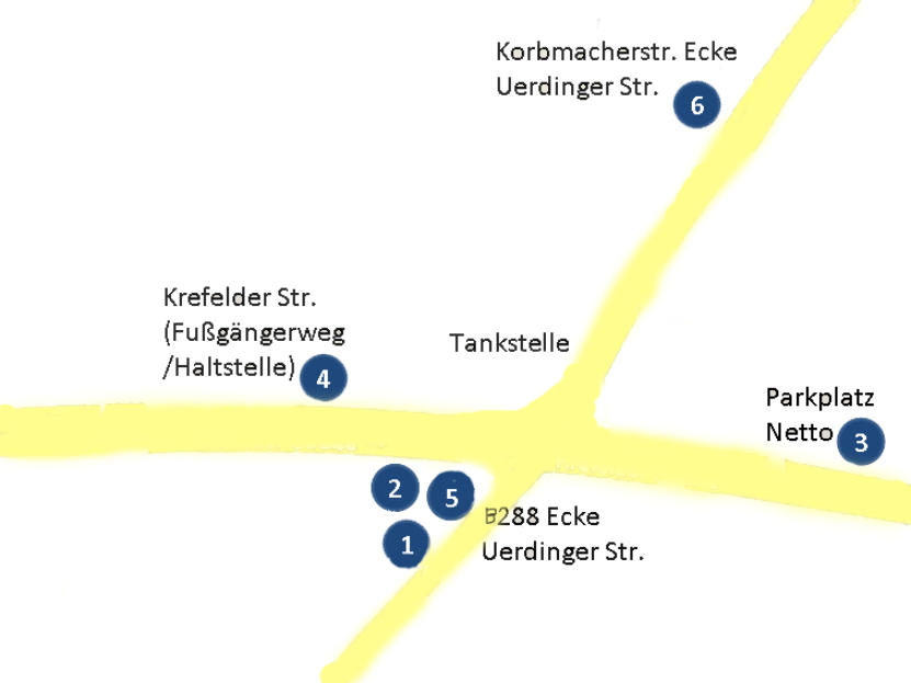 Verkehrszählung: 	 unsere Standorte für die Zählung