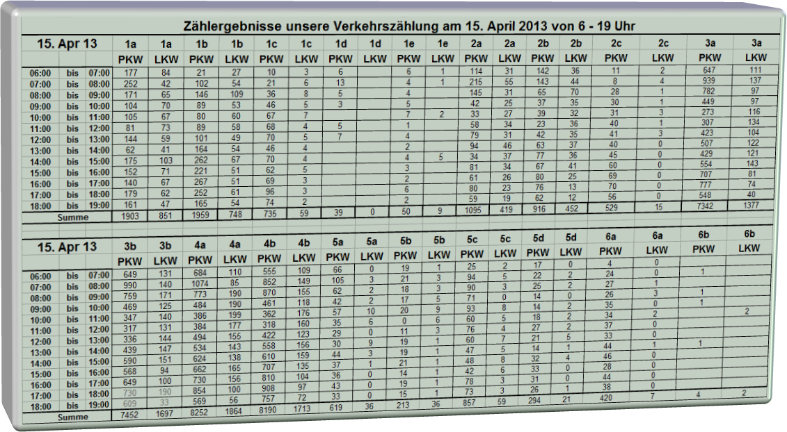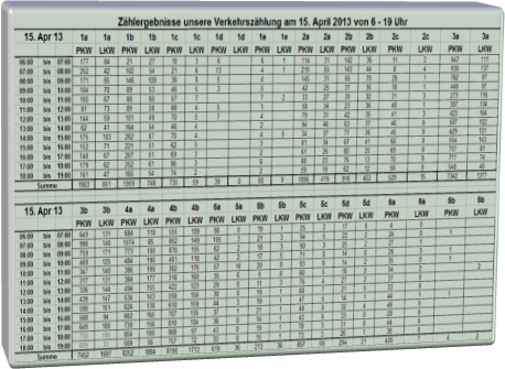ermittelte Zahlen der einzelnen Verkehrsströme