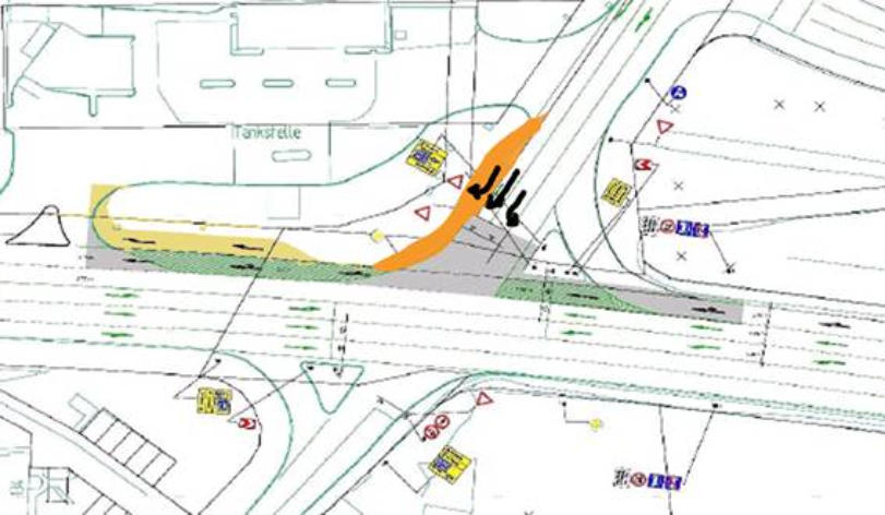 unserem Vorschlag angedachten zusätzlichen Rechtsabbiegespur gerade