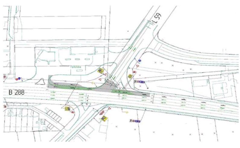 wird. Der Hauptanteil der Verkehrsteilnehmer fährt links in die B288 ein.”