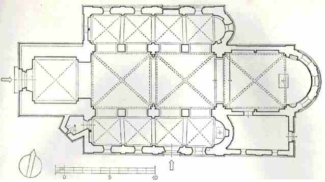 Dreiapsidenanlage, spätstaufische Gewölbebasilika (30,5 x 14,4 m)