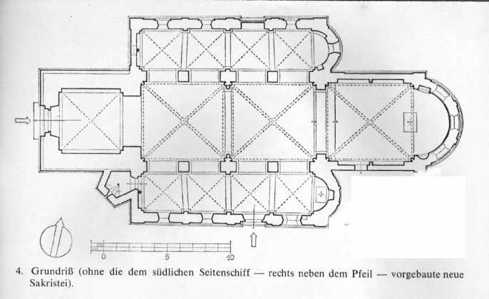 Die Sakristei wird abgerissen und durch einen Neubau im Süden durch die Verlängerung des Seitenschiffes angebaut |
