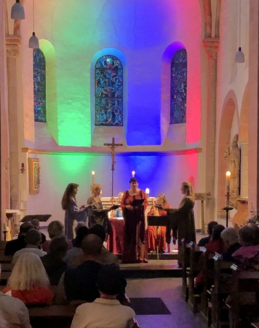 In der Abgeschiedenheit ihrer Klöster, die sich zu Zentren eigener Spiritualität und Mystik entwickelten, fanden die religiösen Frauenbewegungen des 12./13. Jh. einen idealen Raum. Die Zisterzienserinnen gingen zudem ganz eigene musikalische Wege. Erstaunlich anders stellen sich ihre Handschriften und Musik im Stundengebet und Messen gegenüber denen der Mönche des gleichen Ordens dar. Besannen sich die Mönche zurück auf Schlichtheit und Einfachheit, sowohl in der Ausstattung von Klöstern als auch im Gesang, findet man bei den Nonnen eher das Gegenteil: Prächtige, goldverzierte Handschriften, Kunstwerke außergewöhnlich kreativer Bildfindungen, selbstbewusste Darstellung als Stiftsfrauen und Künstlerinnen, neben einer ausufernden Melismatik mit einem größeren Tonumfang, sogar eine frühe Mehrstimmigkeit!