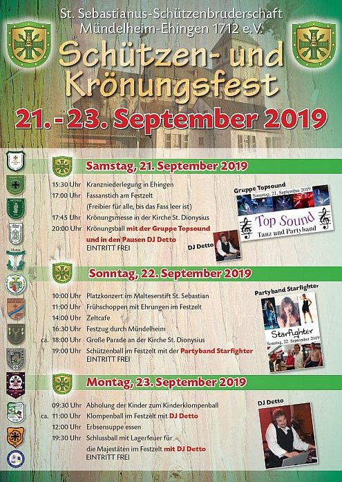 21.-23.Sept: Schützen- & Krönungsfest d. St.Sebastianus Schützenbruderschaft Mündelheim/Ehingen - 16.09.2019 - 15:08