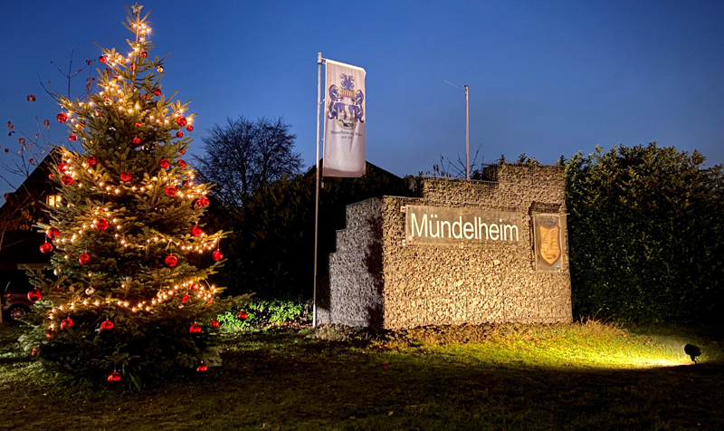 Die Beleuchtung an unserem Ortseingang funktioniert wieder und der geschmückte Weihnachtsbaum ist aufgestellt.