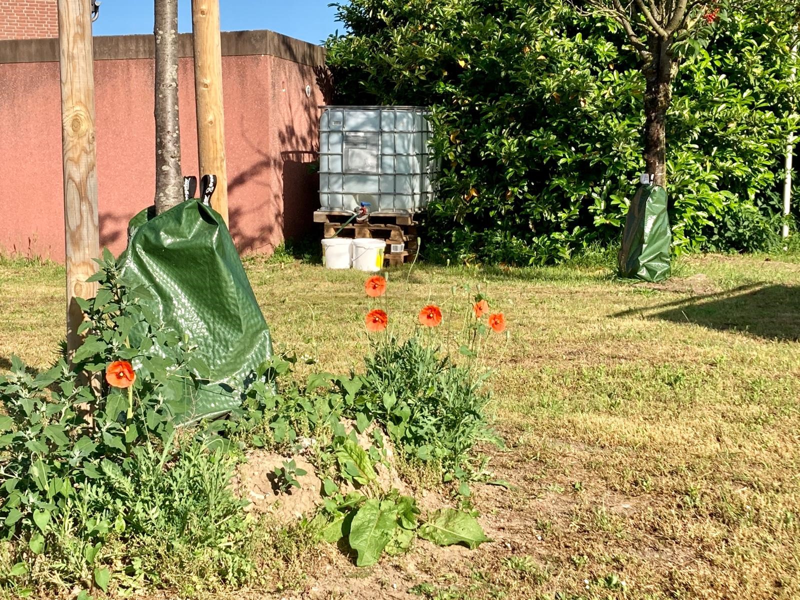 Rechtzeitig vor einer hoffentlich schönen Sommerzeit werden die Bäume nun mit Hilfe sogenannter Wassersäcke versorgt, so dass die noch jungen Bäume einen weiteren trockenen Sommer überstehen können.