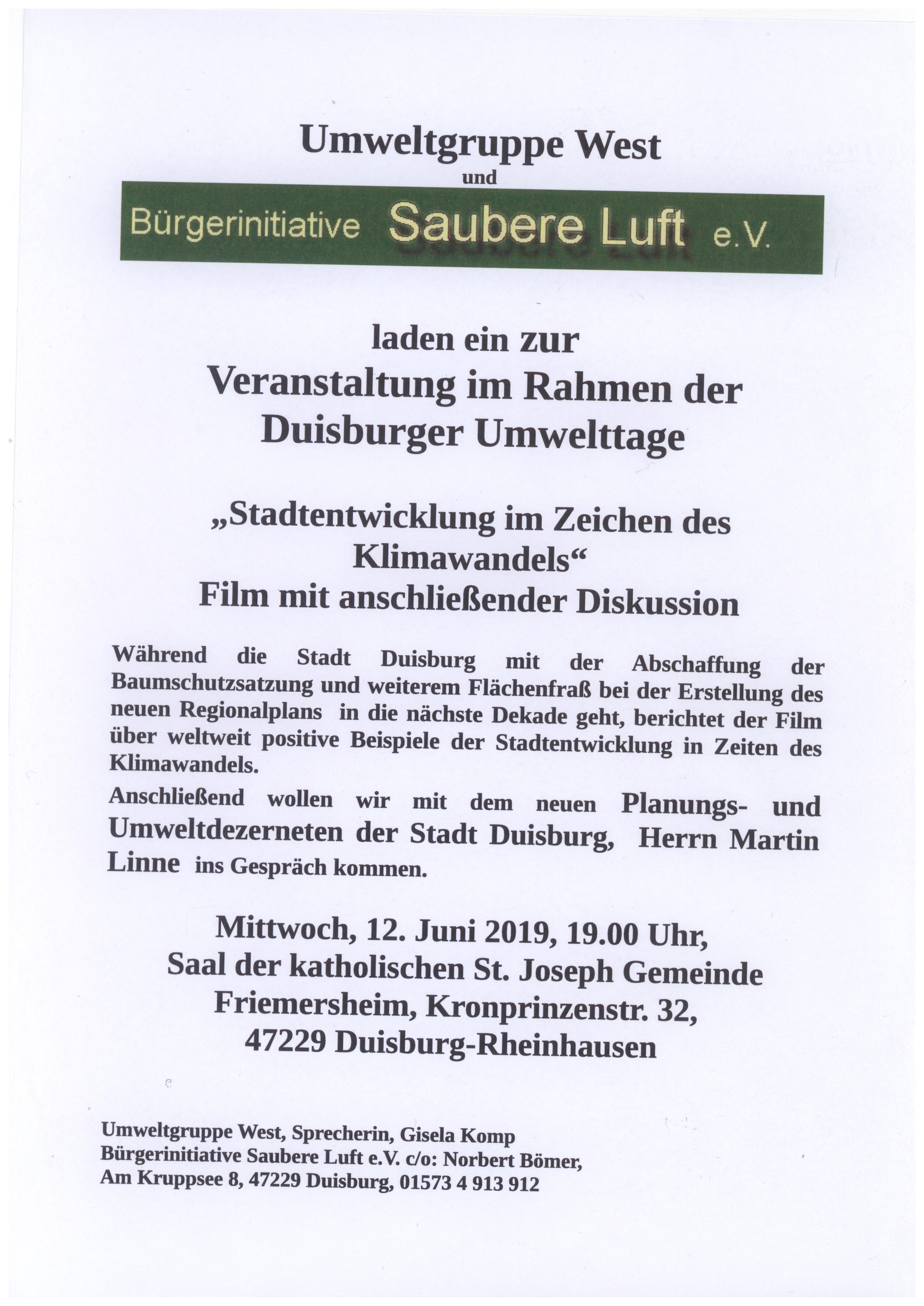 Die Umweltgruppe West und die Bürgerinitiative Saubere Luft e.v. laden ein: